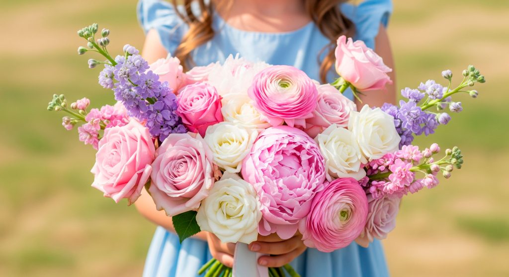 • Букеты из пионов, лилий, хризантем: Для тех, кто предпочитает разнообразие и яркие краски.